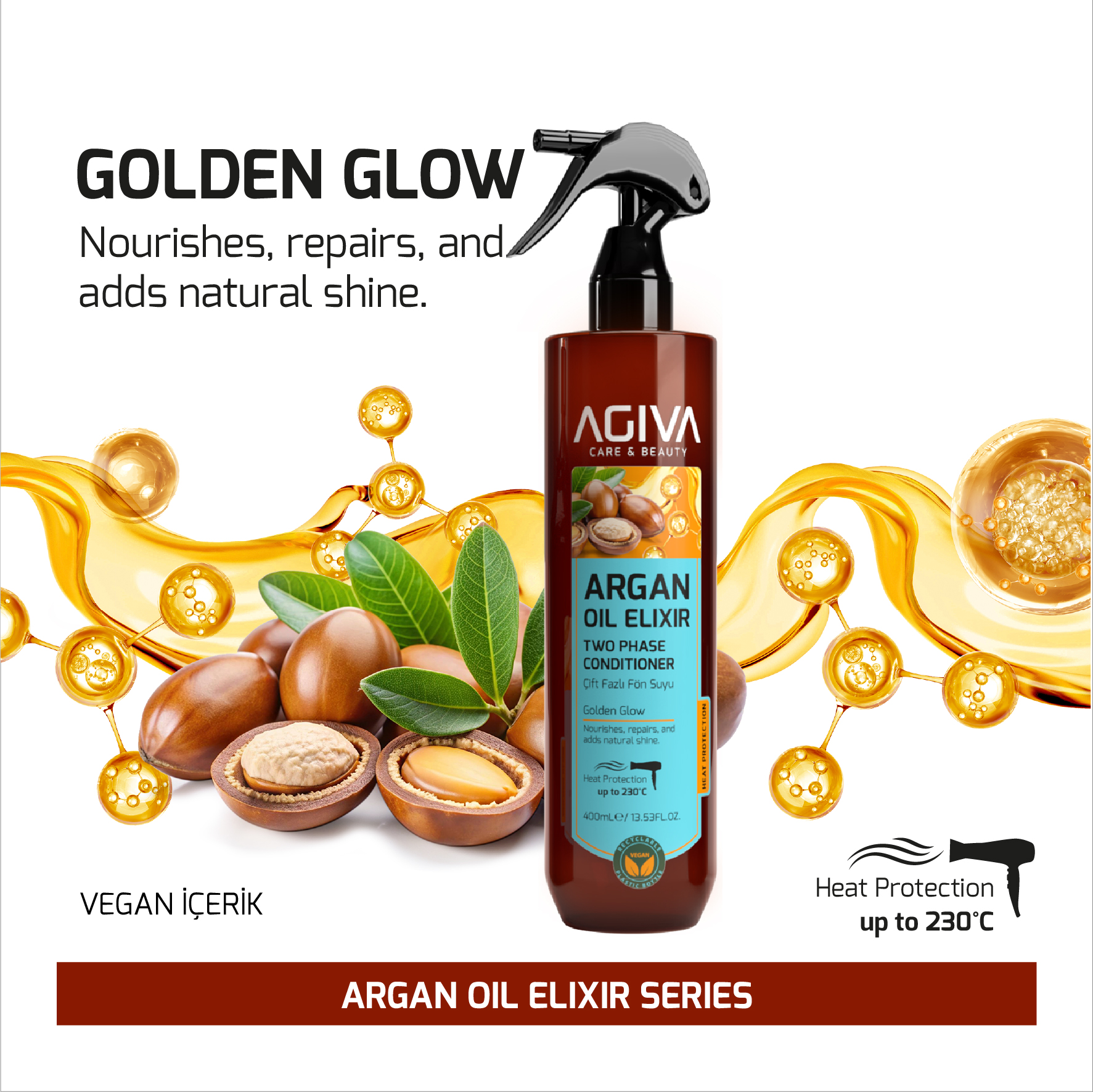 Argan Oil Elixir Çift Fazlı Fön Suyu, argan, badem, avokado, üzüm çekirdeği, susam, buğday, zeytin ve jojoba yağlarının uyumuyla geliştirilmiştir. Bu özel karışım saçlara ipeksi bir doku, doğal parlaklık ve yoğun beslenme sağlar. Panthenol ve E vitamini içeriğiyle saçın nem dengesini korur, dış etkenlere karşı koruma oluşturur. Fön öncesi ısıya karşı koruma, fön sonrası ipeksi yumuşaklık ve parlaklık kazandırır. Hafif formülü sayesinde saçta ağırlık hissi bırakmaz, kolay tarama ve şekillendirme sağlar. Kullanım: Kullanmadan önce iyice çalkalayınız . Nemli veya kuru saçın üzerinden uçlara doğru püskürtülmesi yeterlidir. Günlük kullanıma uygundur. Durulama gerektirmez.