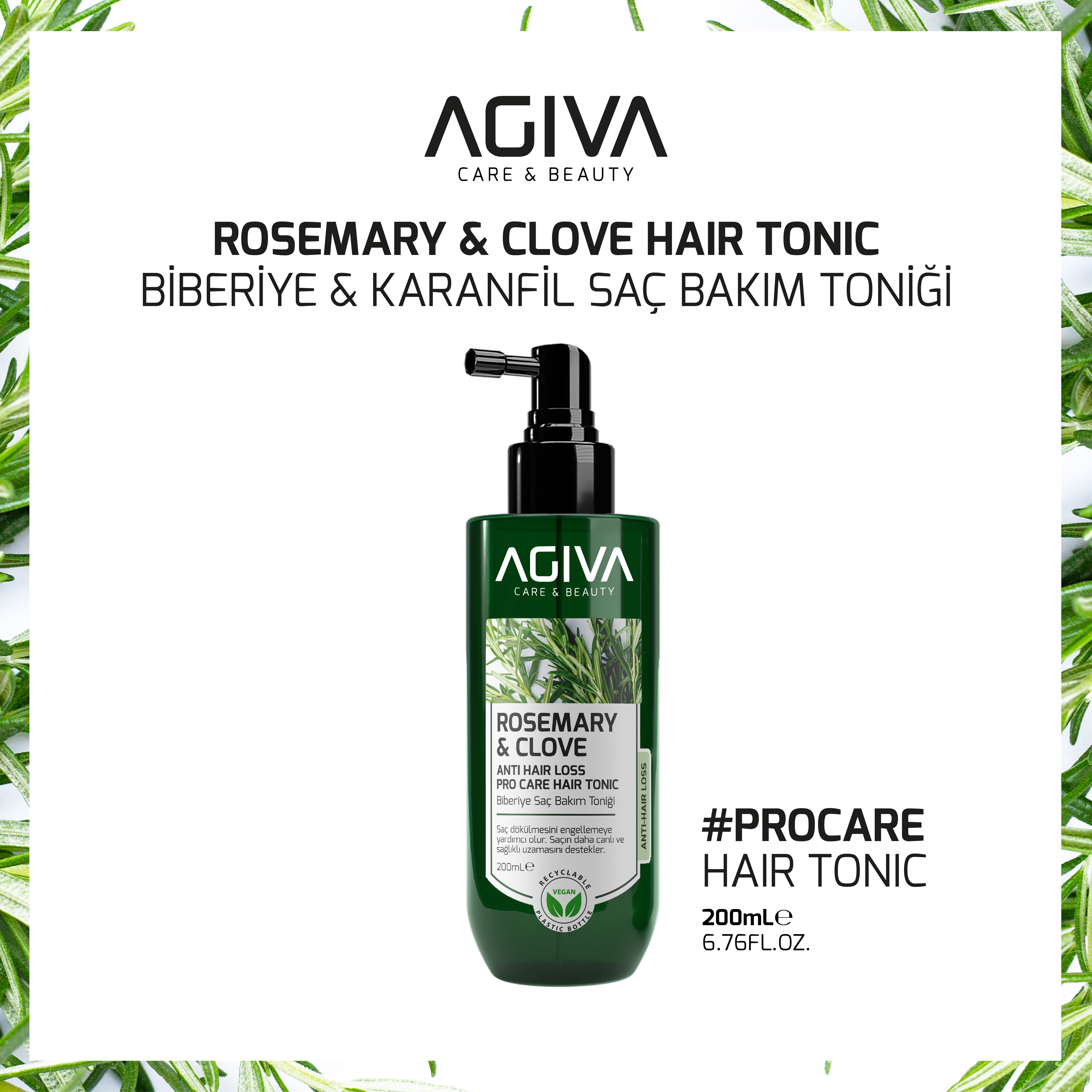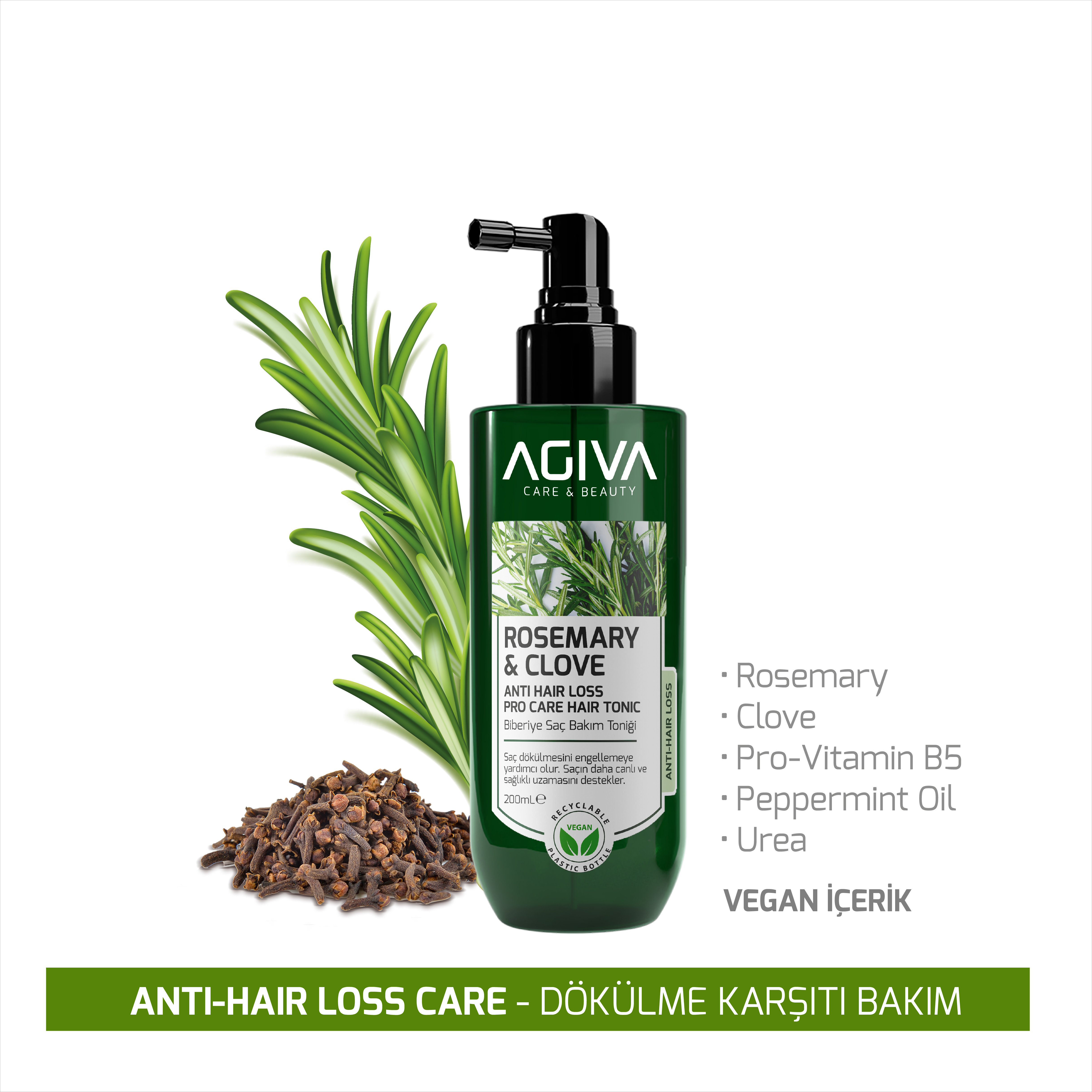 Saçlarınızın gücünü doğadan almasına izin verin! Biberiye ve karanfilin mucizevi birleşimiyle formüle edilen Agiva Pro Care Saç Toniği, saç köklerinizi canlandırarak daha dolgun ve sağlıklı bir görünüm kazanmanıza yardımcı olur.
