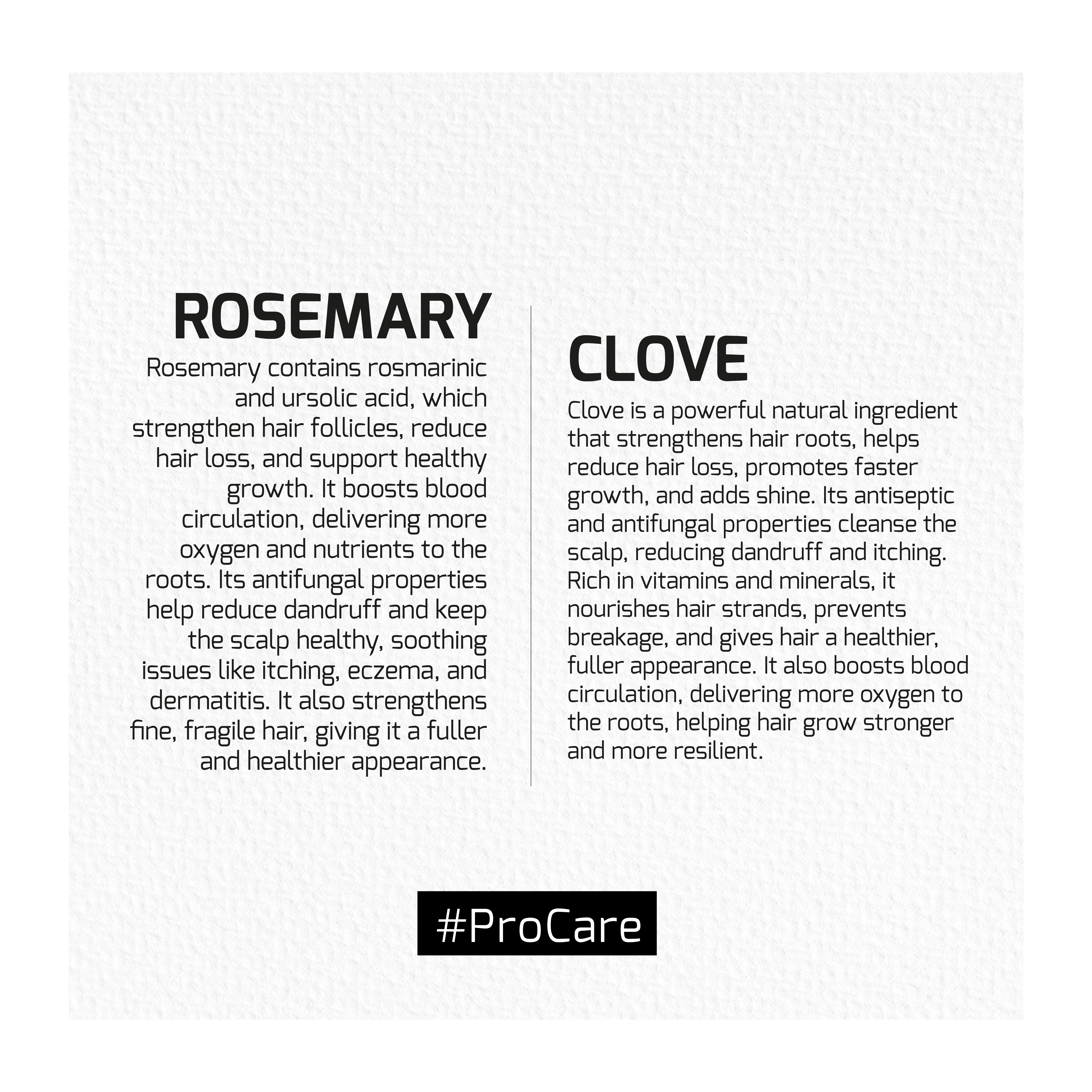 Biberiye & Karanfil Gücü: Kan dolaşımını hızlandırarak saç köklerini besler ve yeni saç oluşumunu destekler.