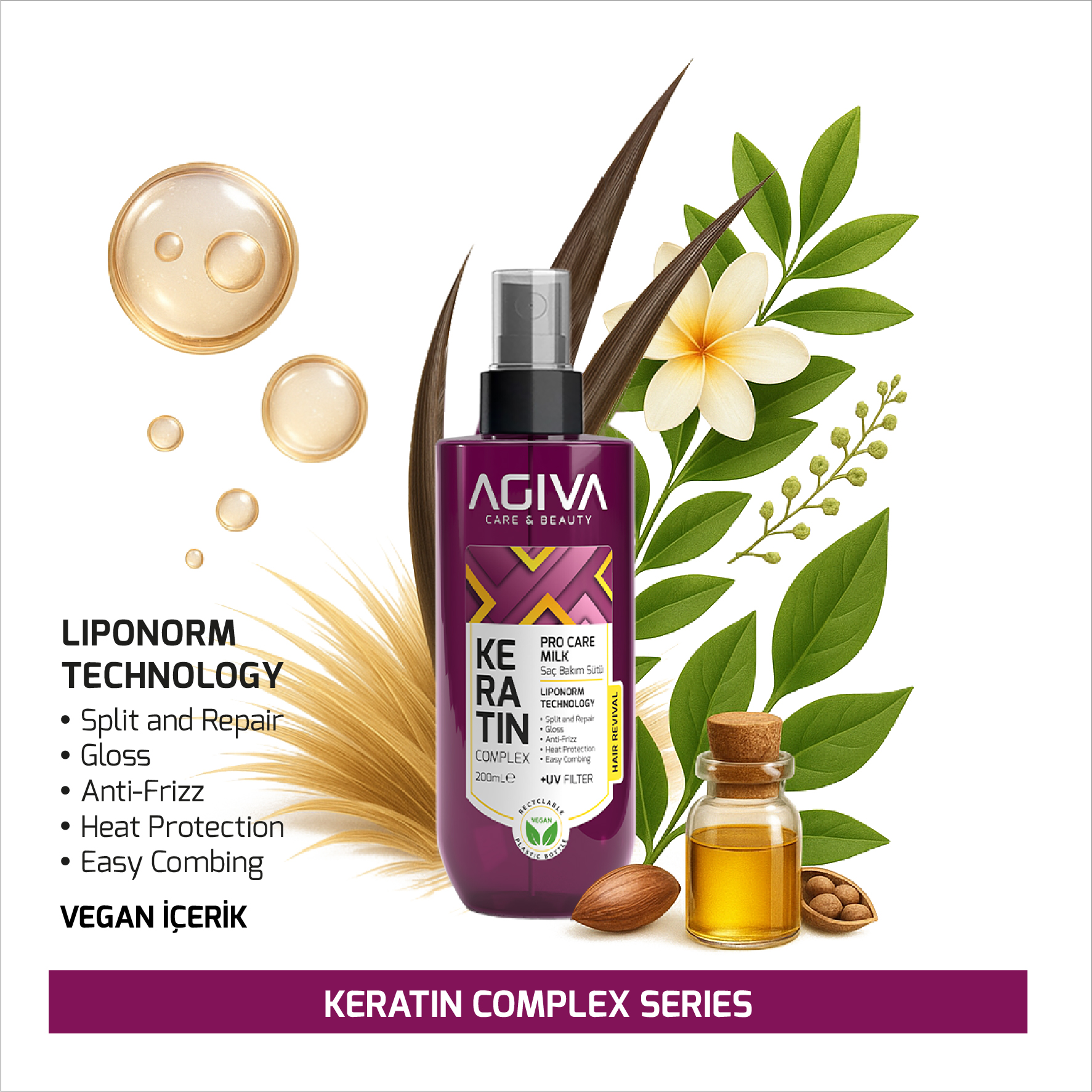 Agiva Keratin Complex Saç Bakım Sütü keratin mineralleri, TRI-MEA ve Akasya kolajeni içeren hafif yapılı formülüyle saç tellerini anında yumuşatır, besler ve kolay taranmasını sağlar. Saçın doğal nemini koruyarak elektriklenmeyi azaltır, ipeksi bir yumuşaklık ve parlaklık kazandı...